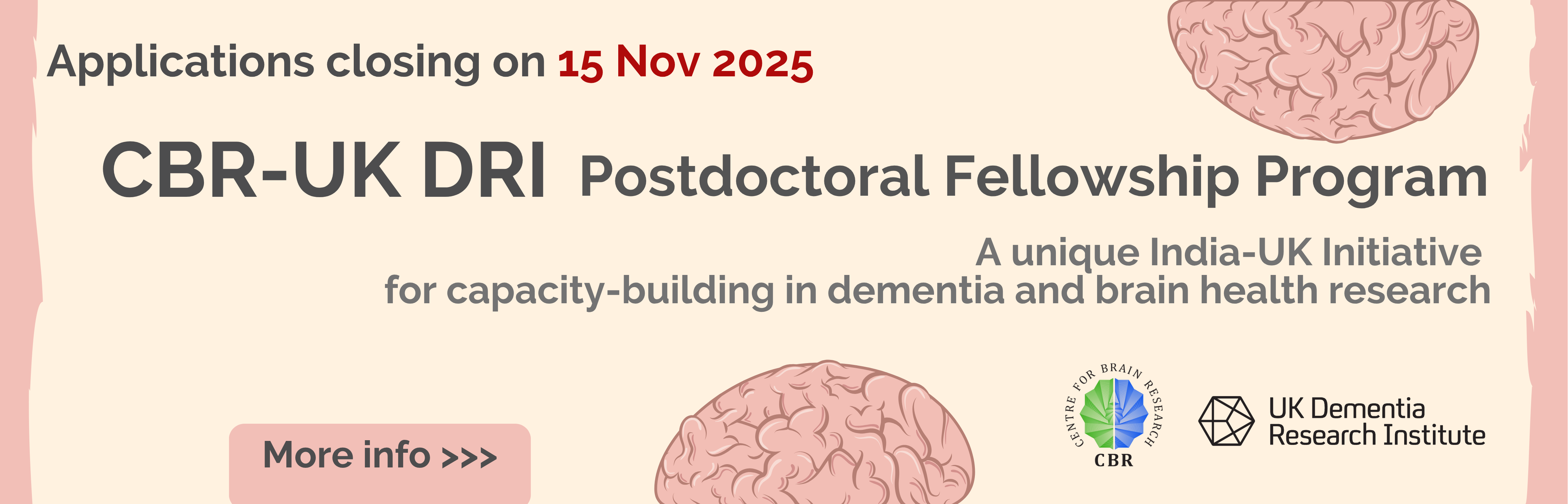 Events Highlights Recent and Past Event Highlights CBR-UK DRI Fellowships BookTalk 2025 CBRAIN Internship 2025 DVP Lecture 2025 CBR Currents Wave 6 CBR joins hands with UK DRI Sharwaree Gokhale Memorial Lecture DVP Lecture 2024 Brain Health Workshop 2024 CBR Currents Wave 5 CBRAIN INTERNSHIP 2024 CBR Open day 2024 CBR Currents Wave 4 CBR Young Clinician Researchers Meeting, 19 January 2024 Sharwaree Gokhale memorial lecture by Dr. Prof George Davey Smith, 05 December 2023 CBR Currents Wave 3 PhD Admissions 2023 CBR Currents Wave 2 Centre for Brain Research Research & Innovation (CBRAIN) Internships Genomics Hackathon, 24 March 2023 IISc Open Day, 04 March 2023 Sharwaree Gokhale memorial lecture by Dr. Avindra Nath, 15 February 2023 Extra Mural Support for Transformational Aging Brain Research (EMSTAR) CBR Young Researchers Meetings, 29 and 31 October 2022 CBR Currents Wave 1 Alzheimer’s Awareness Meeting, 21 September 2022